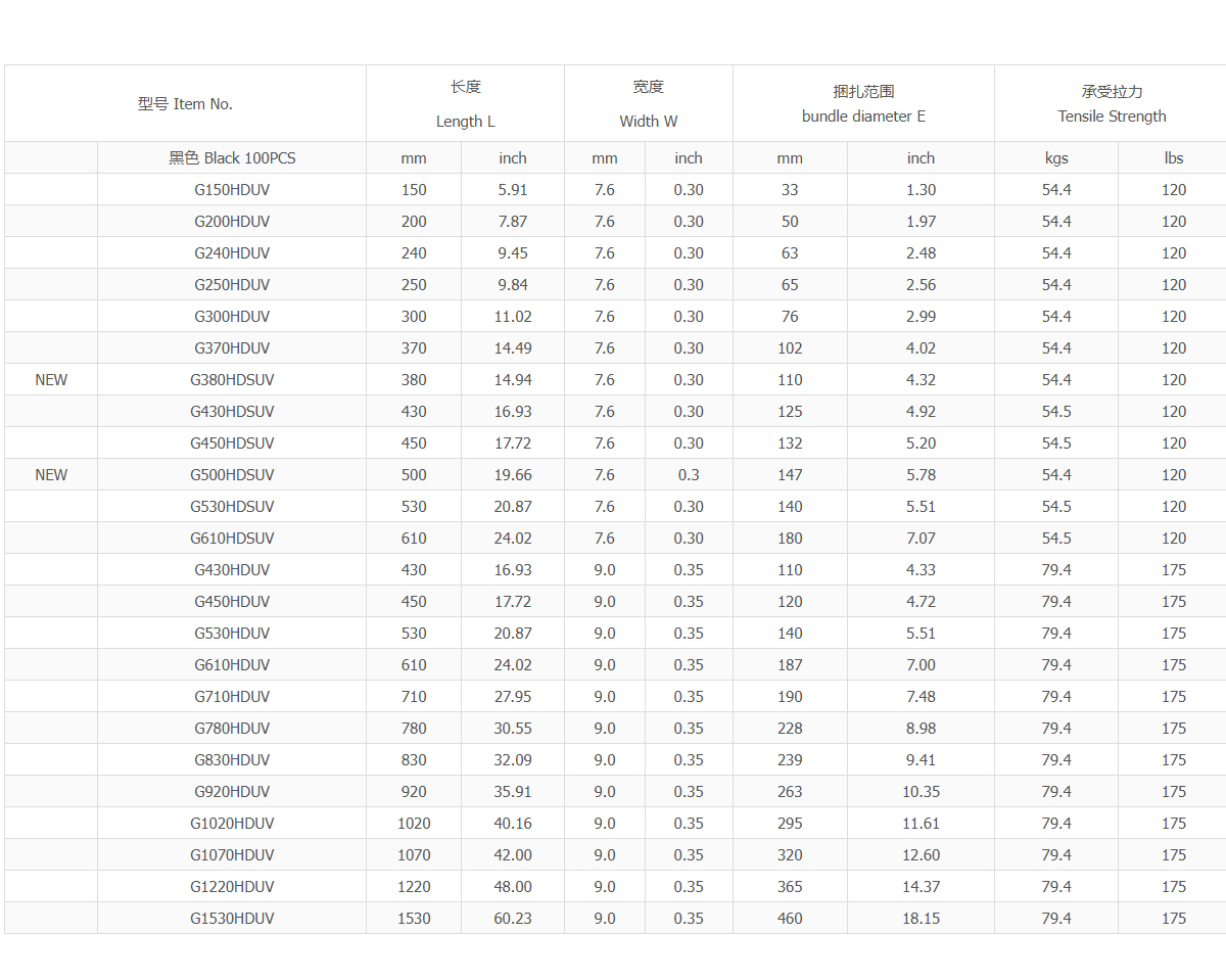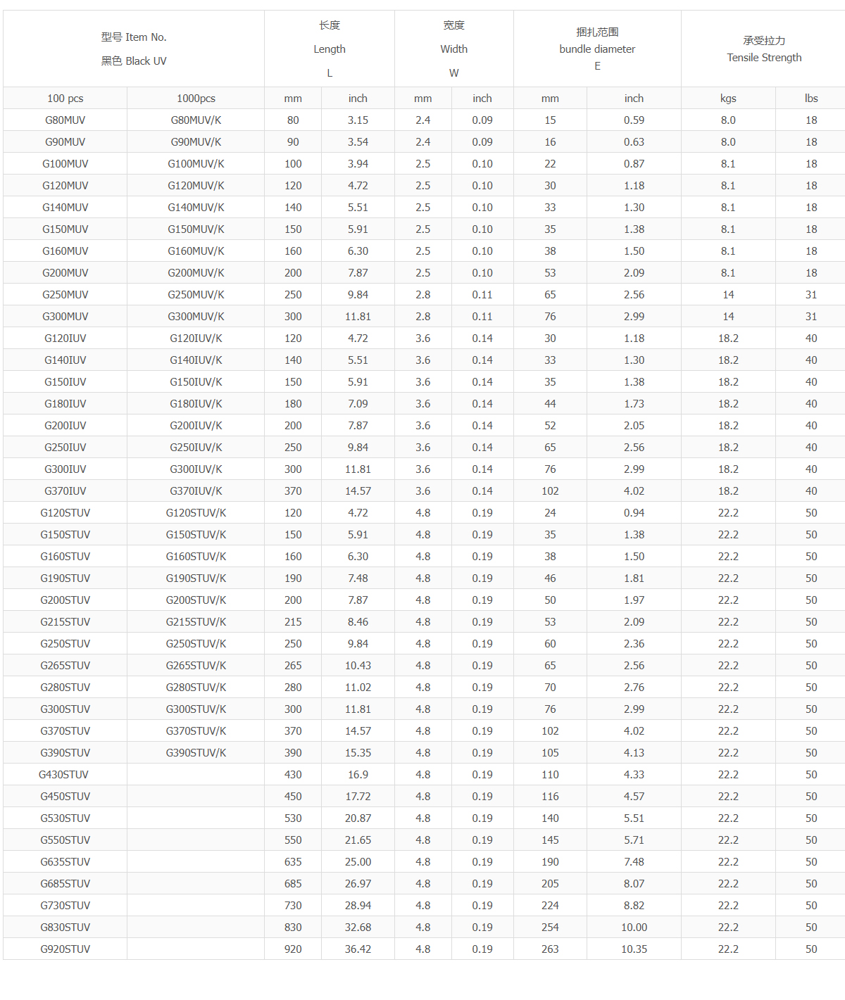 特 性:品质优良,捆扎后静态-20℃耐热至85℃不易断裂松开.