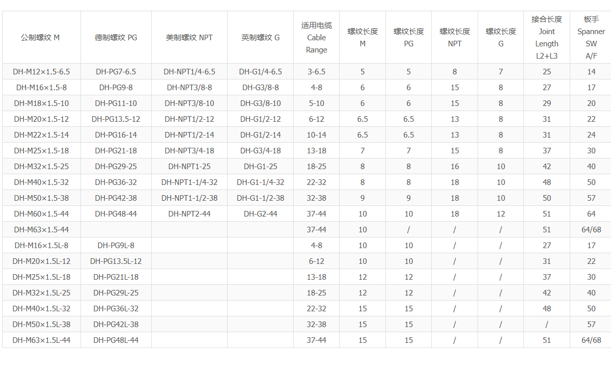 螺牙规格:M/PG/NPT/G